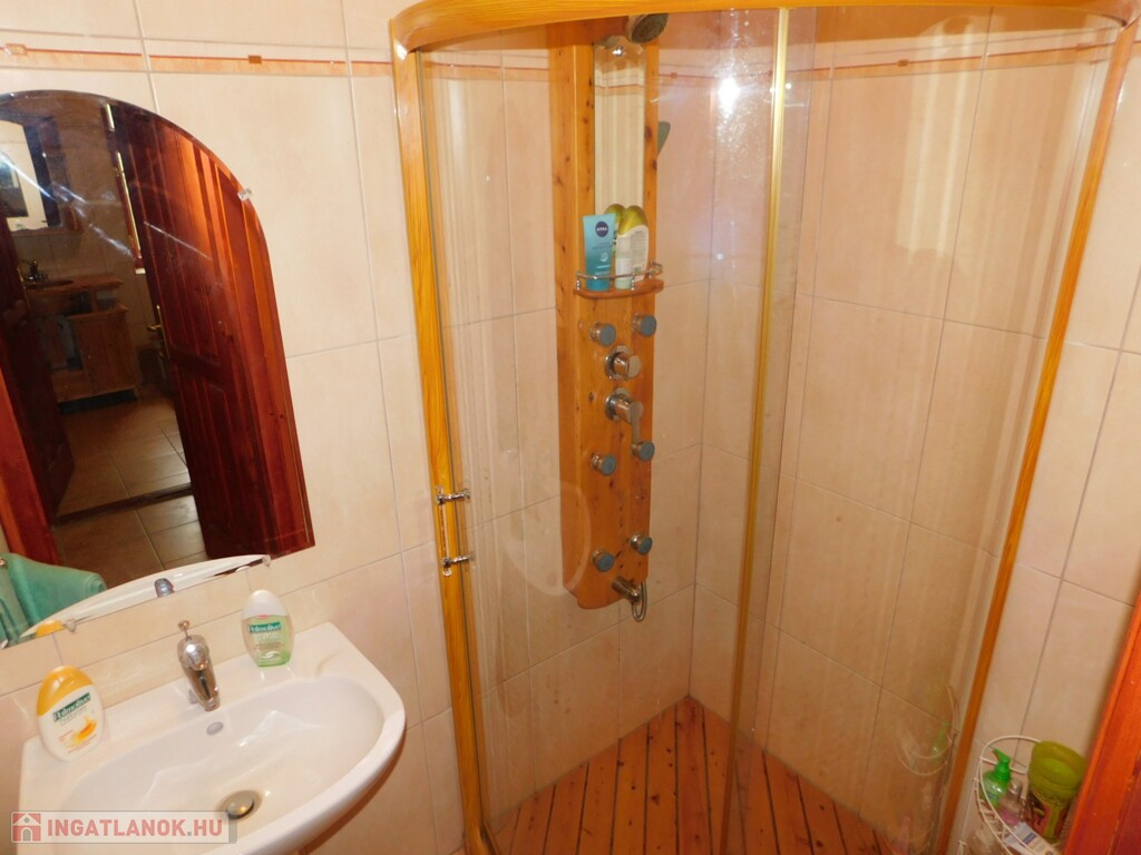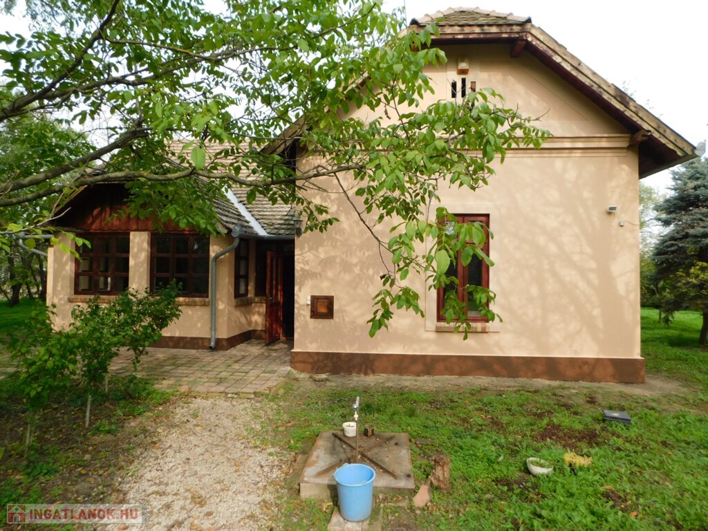 A teljesen bekerített tanya területen 3 felépítmény található. Központi épülete egy kb. 60 éves, tégla alapon vályog falazatú, teljes körűen felújított, tetőtér beépítéses, 5 szobás, 2 fürdőszobás, összesen 153 m2 hasznos alapterületű, fa tüzelésű cserépkályhával, valamint elektromos hősugárzókkal fűtött, rendkívül igényes és szinte minden igényt kielégítő lakóépület. Ezen kívül található még a területen egy 45 m2-es garázs és tároló funkciót ellátó melléképület és egy 30 m2-es pince, felette található igényes fedett terasszal!